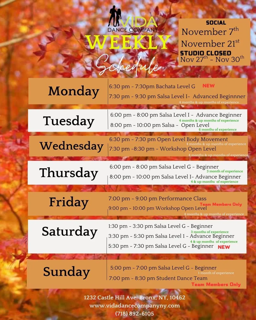 VIDA DANCE COMPANY Schedule